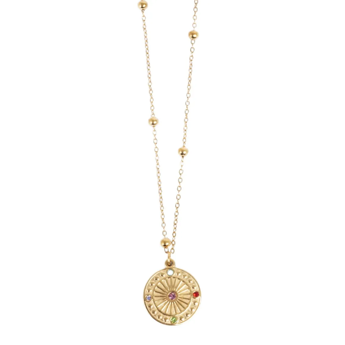 Et stilrent kjede i gull med et glitrende krystallanheng. Perfekt alene eller i kombinasjon med andre smykker for et elegant uttrykk!