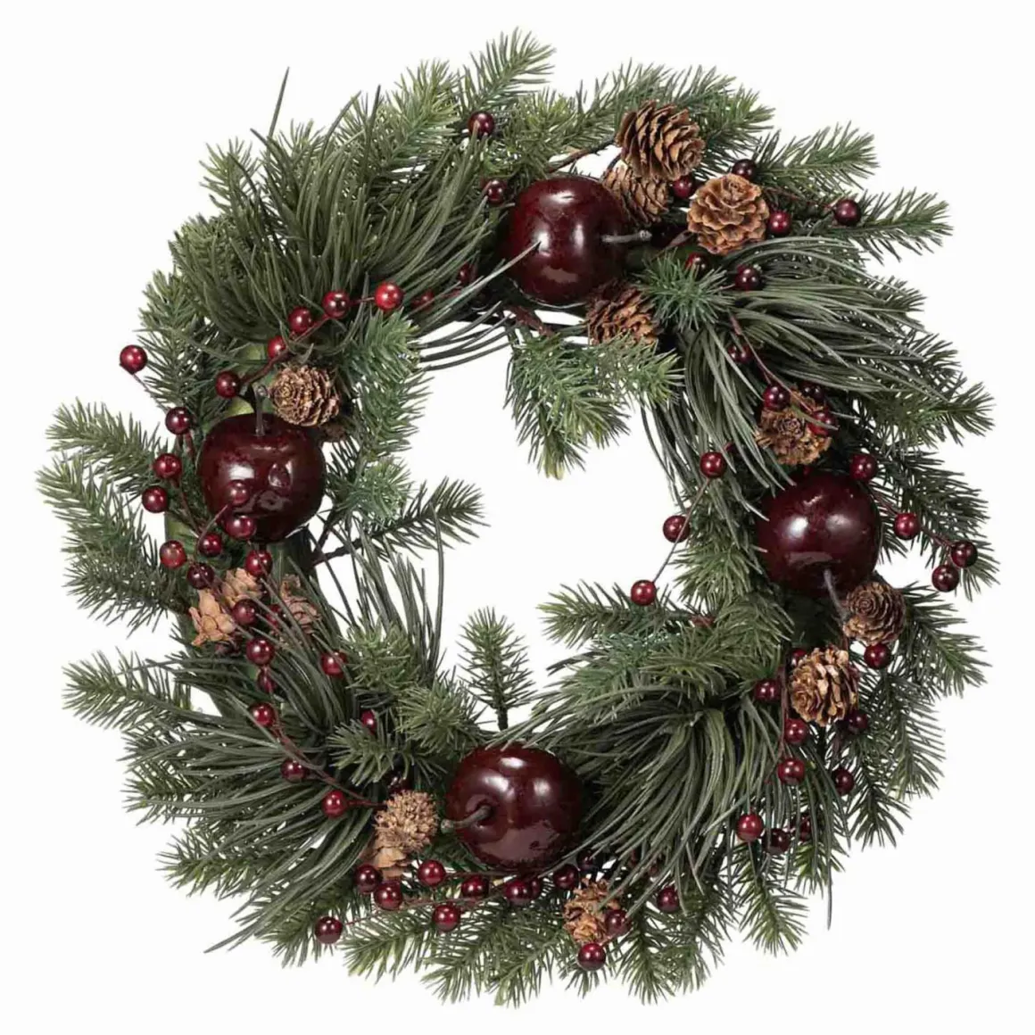 Krans med epler gir hjemmet en koselig og naturlig julestemning. Perfekt på døren, veggen eller som borddekorasjon. Utforsk også vårt for flere dekorative kranser og sesongens pynt.
