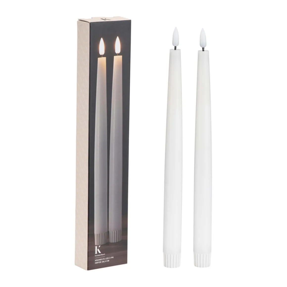 To naturtro LED kronelys med flammeeffekt. Leveres i gaveeske og kan brukes med . Batteri følger ikke med.