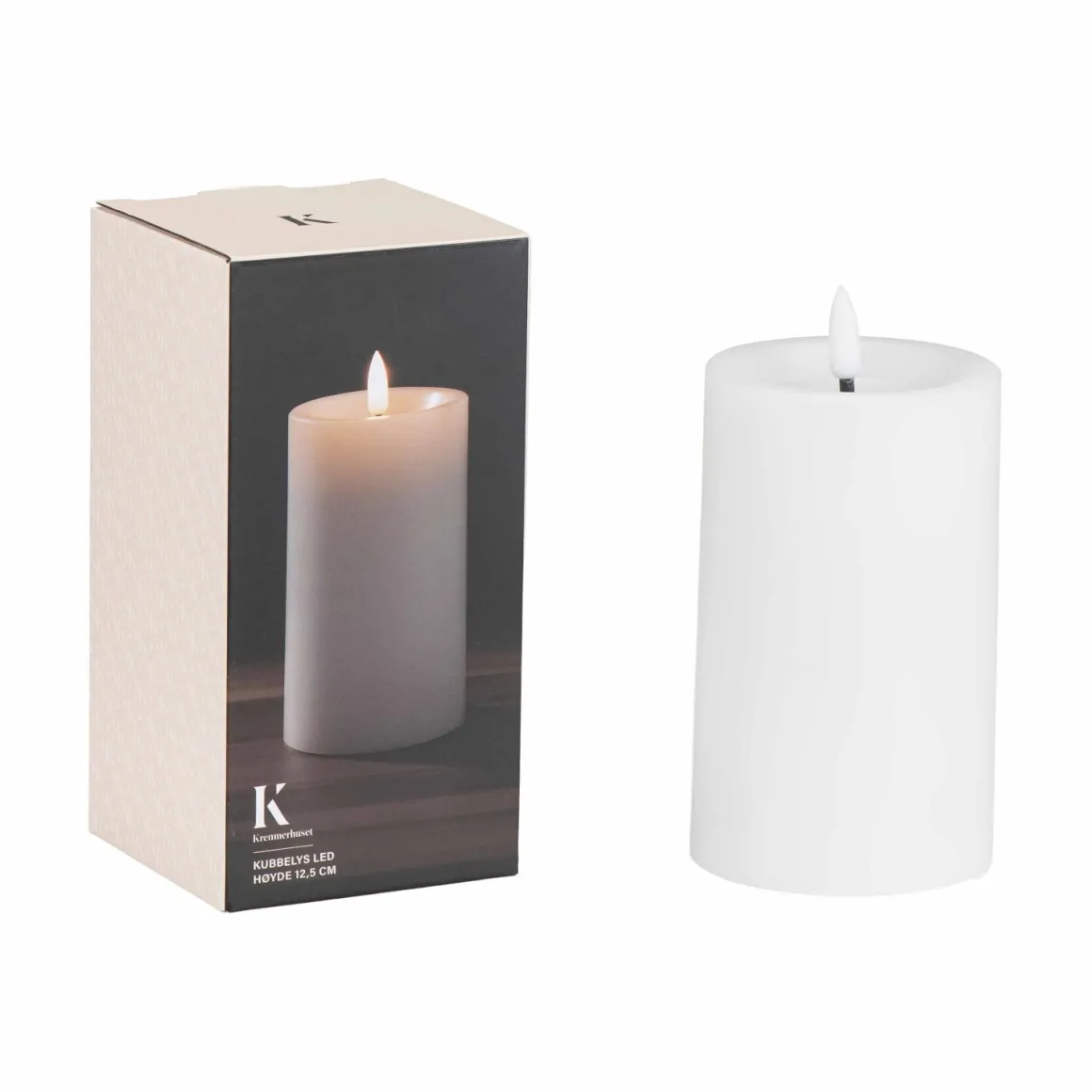 LED kubbelys med naturtro flamme og glatt overflate. Leveres i gaveeske, og kan kombineres med . Batterier medfølger ikke.