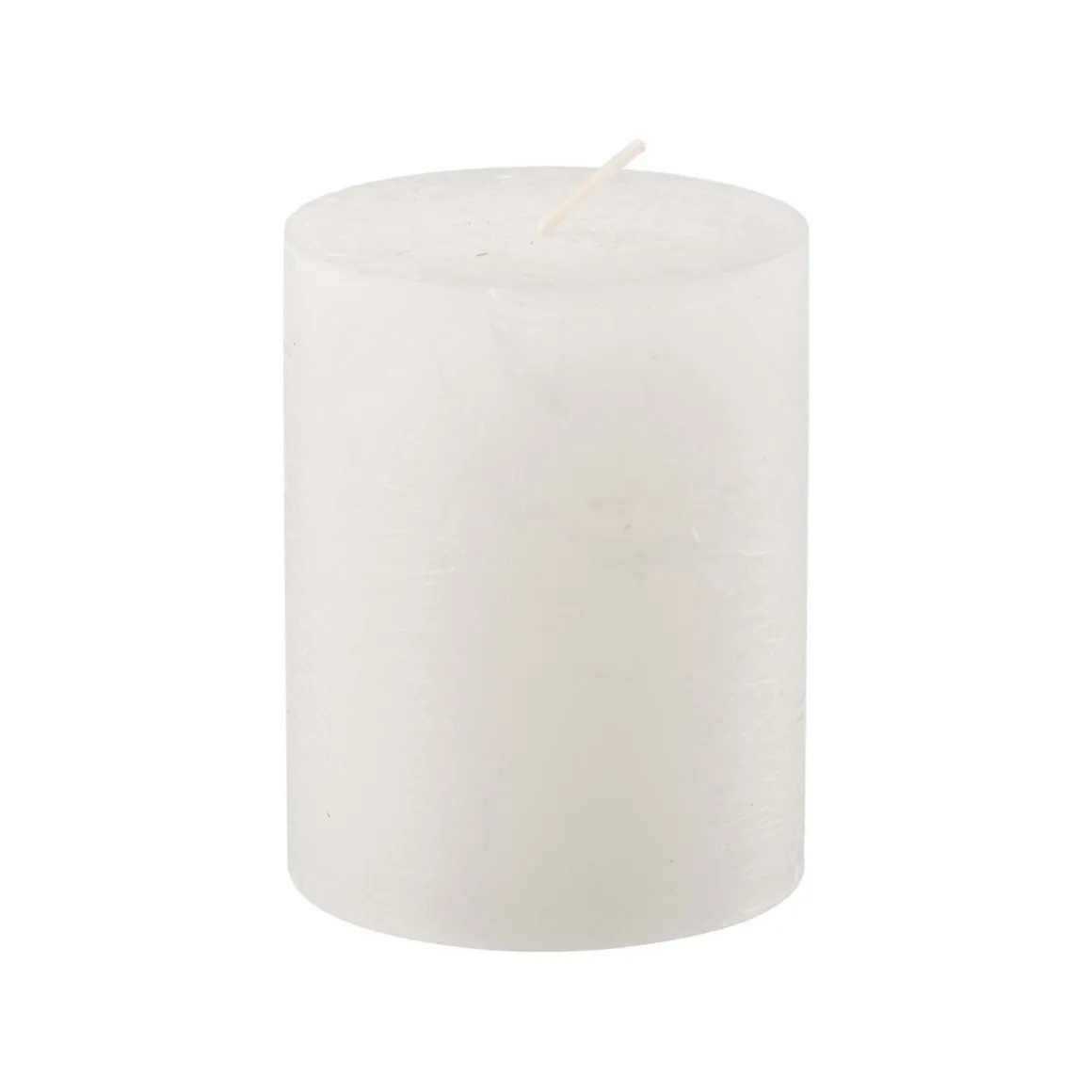 Rustikk kubbelys laget av parafinvoks, med en lett strukturert overflate som gir et varmt uttrykk på både brett og lysfat.