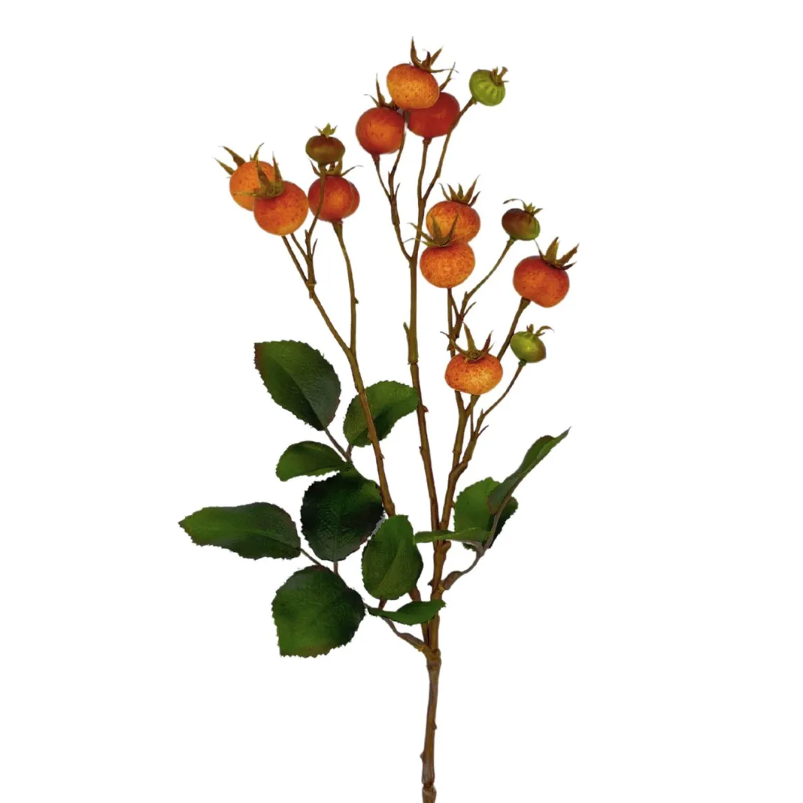 Hent inn høststemningen i stuen med denne dekorative kvisten med oransje og grønne nyper og blader. Perfekt for å skape et naturlig preg i hjemmet uten behov for vedlikehold. Plasser greinen i en alene eller kombiner den med andre og grener for en fyldigere dekorasjon. Ideell for å tilføre farger og tekstur til rommet året rundt.