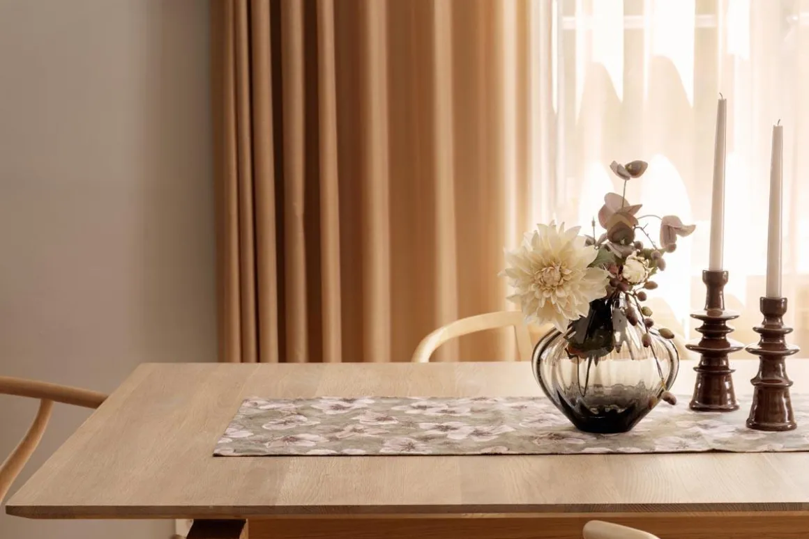 Den dempede grønntonen i bakgrunnen gir blomsterdesignet en fin dybde og passer godt sammen med både lyst og mørkt servise.
