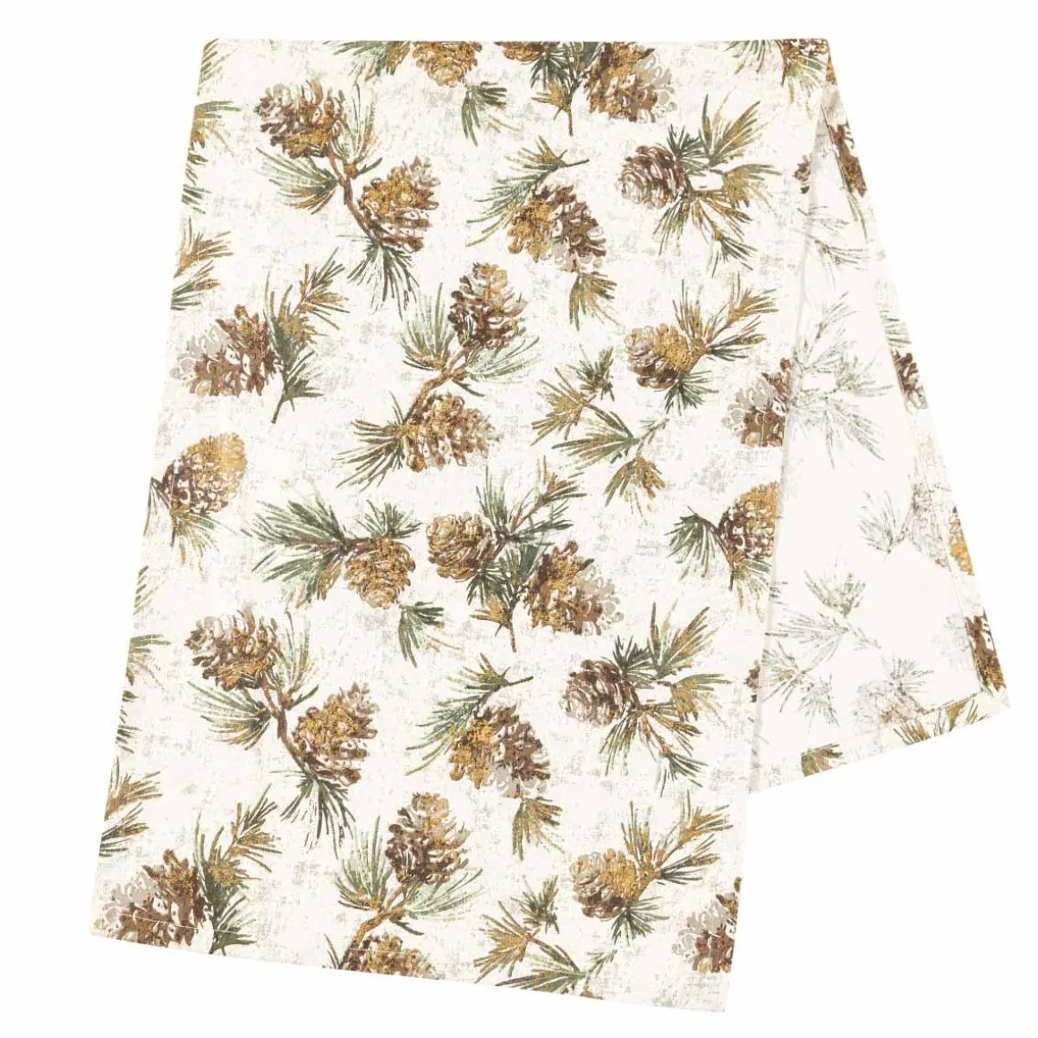 Løperen med konglemønster skaper en lun og naturlig stemning på bordet. Den passer like fint til høstlige middager som til en rolig vinterfrokost.