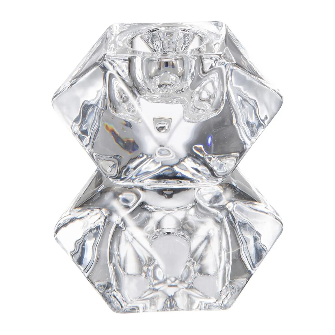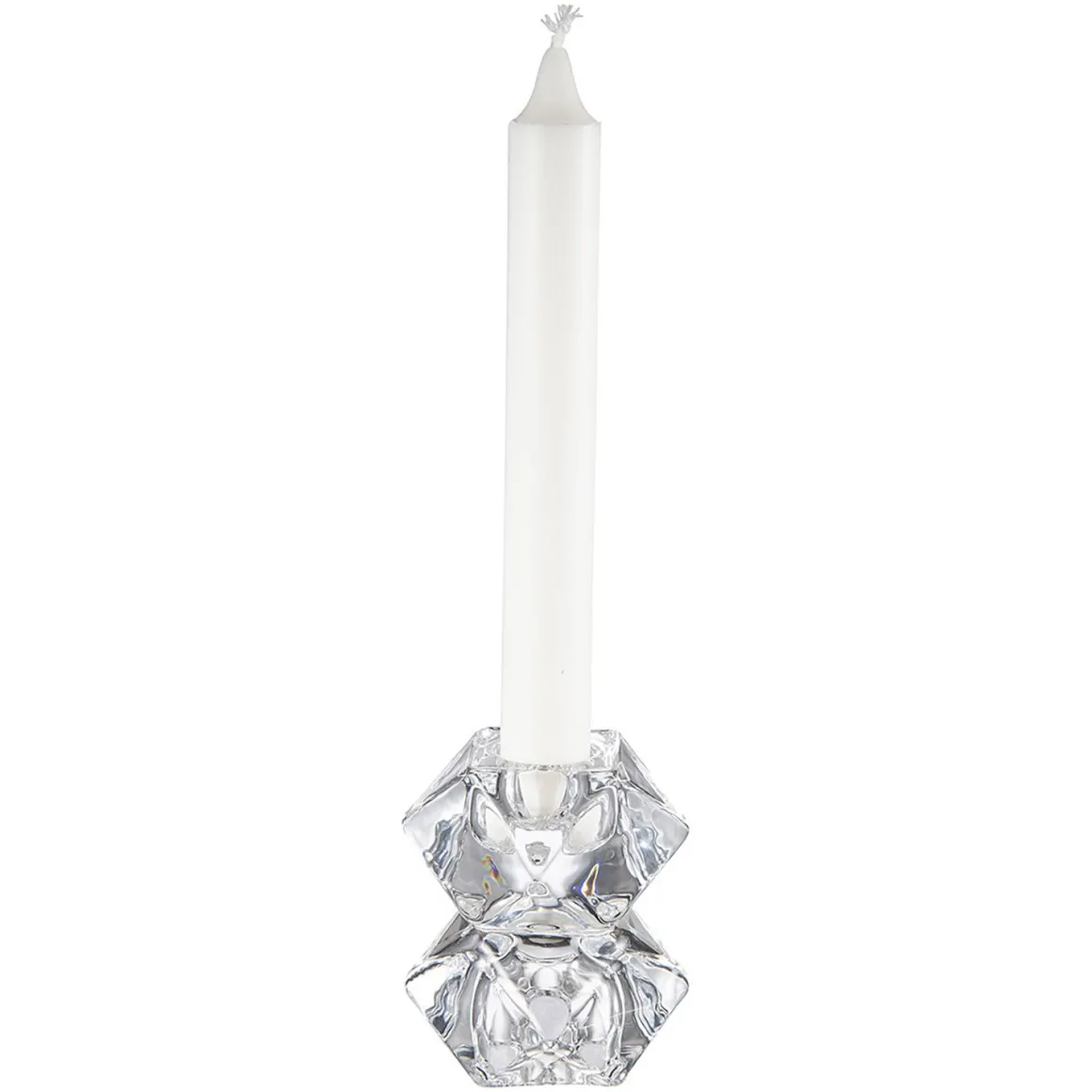 En trendy og stilig kronelysestake i klart glass. Sett den sammen med andre , eller figurer på et for å skape et flott miljø i hjemmet ditt.