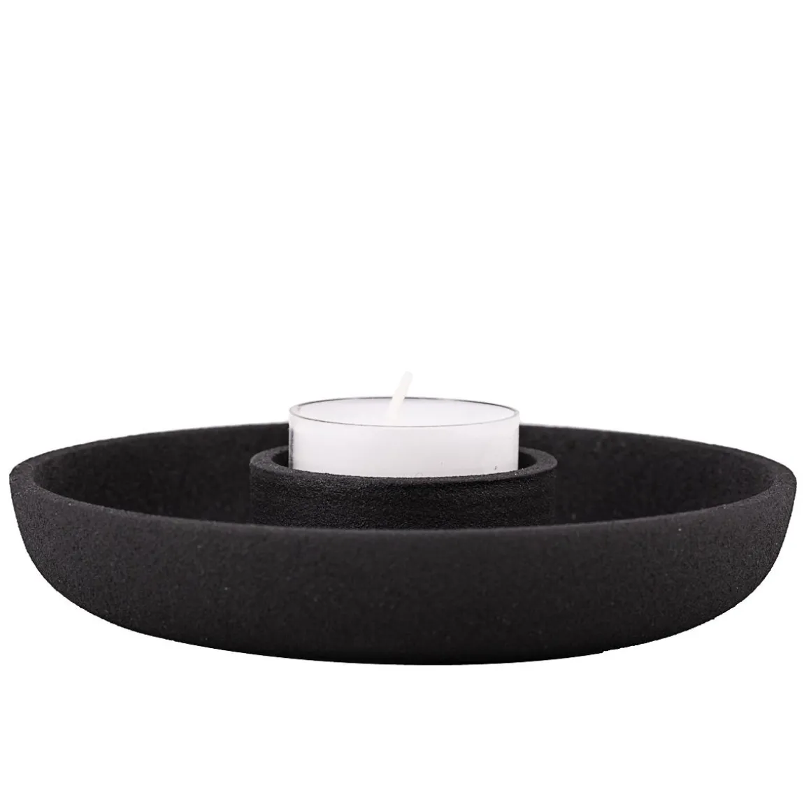 Stilig telysholder i sort metall, røff og ru overflate som gjør seg like god i hyllen som på sofabordet. Plasser på og gjør klart til julepynten som skal frem. Passer perfekt med i samme serie!
