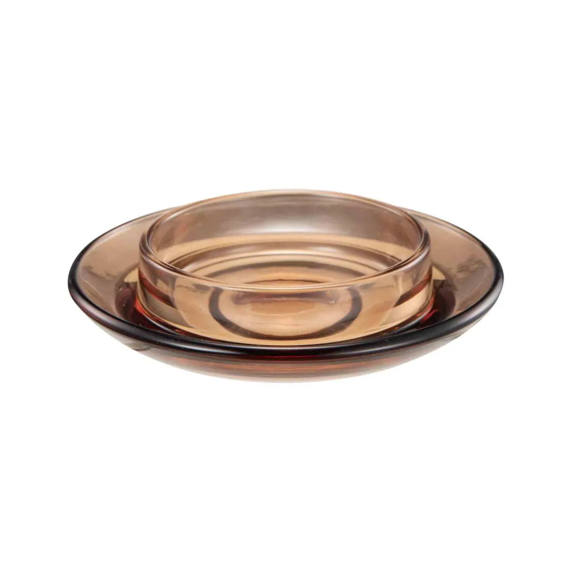 Legg til en varm og innbydende glød i hjemmet ditt med vår lysholder Leo i amber. Denne vakre lysholderen designet for telys har en subtil ravfarget nyanse som skaper en følelse av varme og komfort.