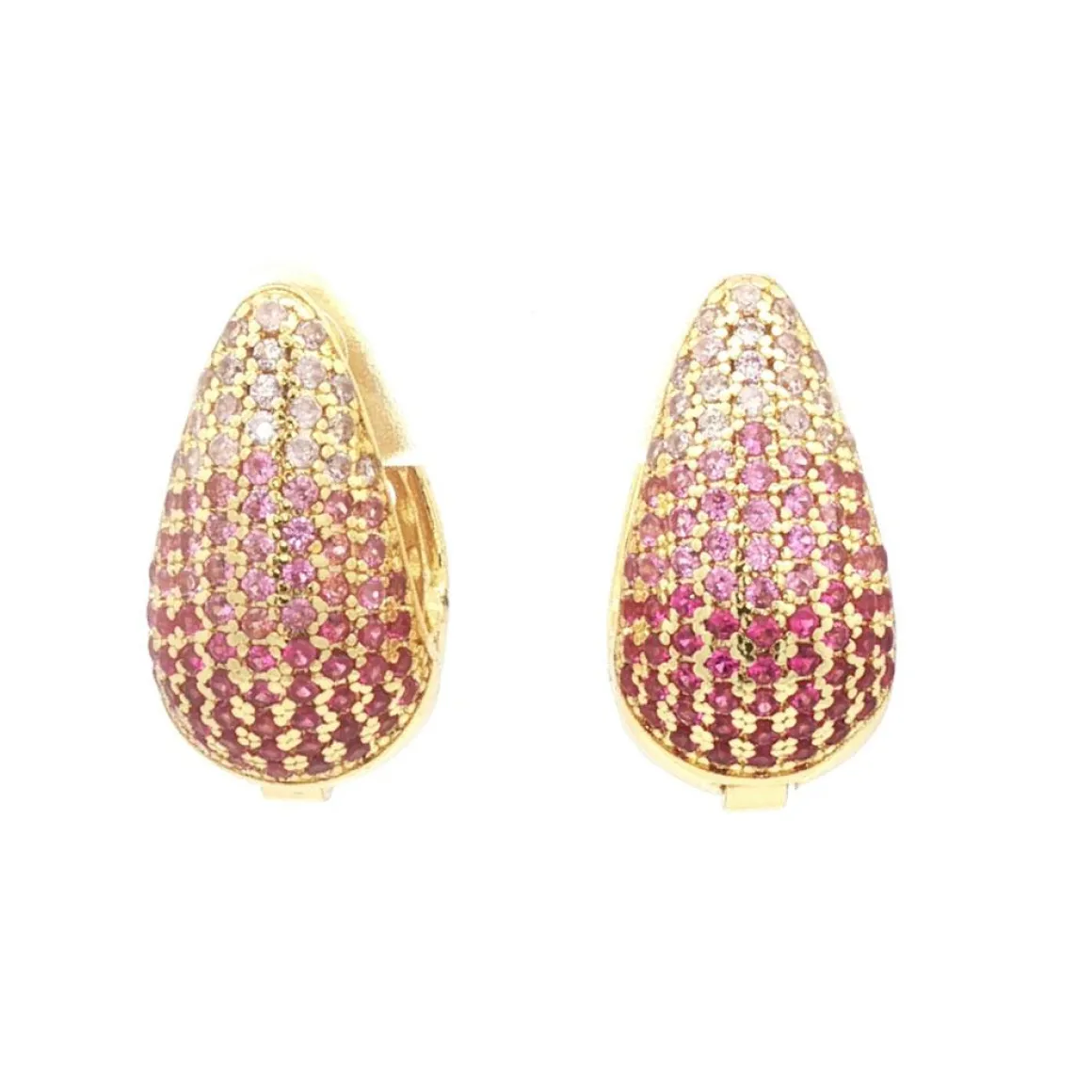 Glitrende dråpeformede øredobber i gullfarget metall, dekorert med rosa stener. Øredobbene kombinerer en feminin stil med en touch av glamour – perfekt til både hverdag og fest. Den lune fargepaletten gjør dem enkle å matche med både lyse og mørke antrekk.