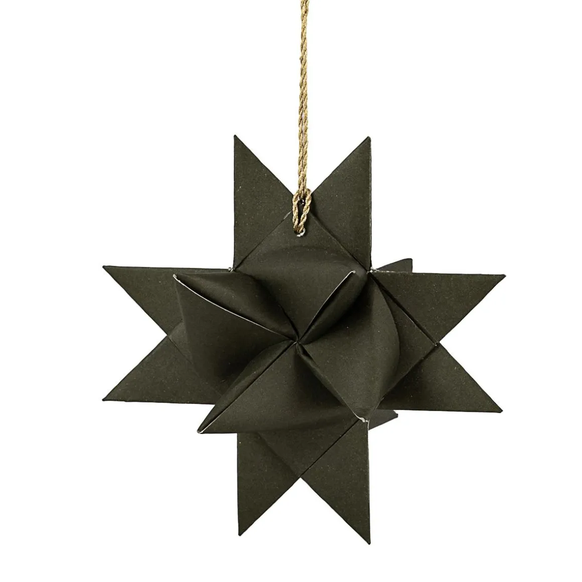 Lekker pakke med to stk grønne papirstjerner. Perfekt til å henge på treet, men gjør seg også like godt som borddekorasjon eller liggende på et lysfat.