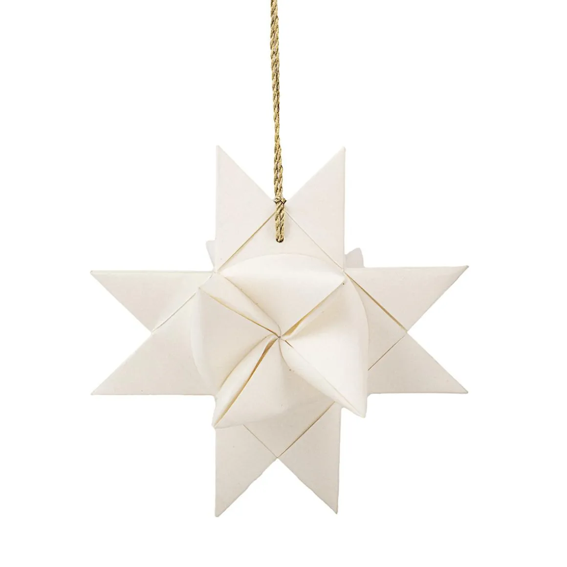Lekker pakke med to stk hvite papirstjerner. Perfekt til å henge på treet, men gjør seg også like godt som borddekorasjon eller liggende på et lysfat.