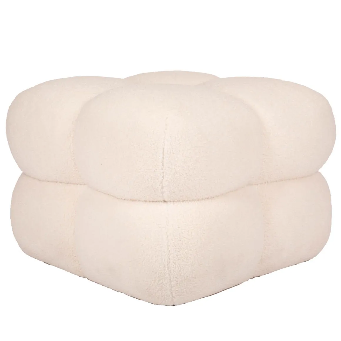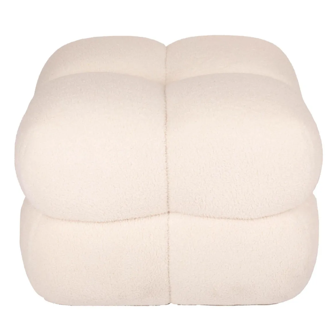 Lekker og trendy puff i hvit teddy materiale. Denne frisker opp en hver stue og gir den et trendy touch. Bruk den som en ekstra sitteplass eller som et lekkert avlastningsbord med et brett eller .