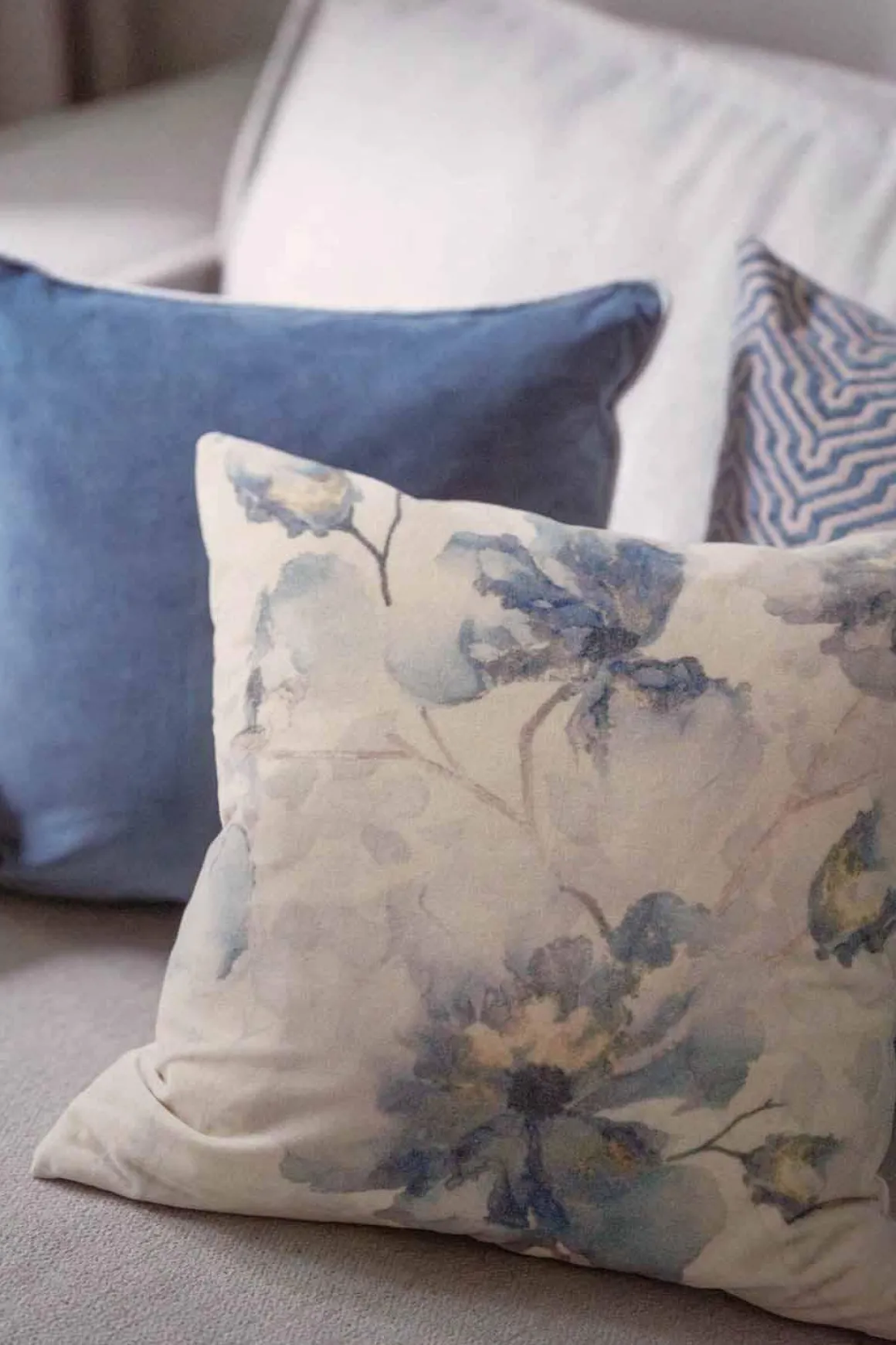 Putetrekket med blomster i delikate blåtoner bringer en følelse av naturens ro inn i hjemmet. Det passer perfekt i sofaen, på sengen eller i favorittstolen, og kombineres lett med andre tekstiler for et harmonisk uttrykk. Trekkets myke stoff og kunstneriske mønster gir rommet en lun stemning. Match med ensfargede puter i blått eller beige for en gjennomført stil.