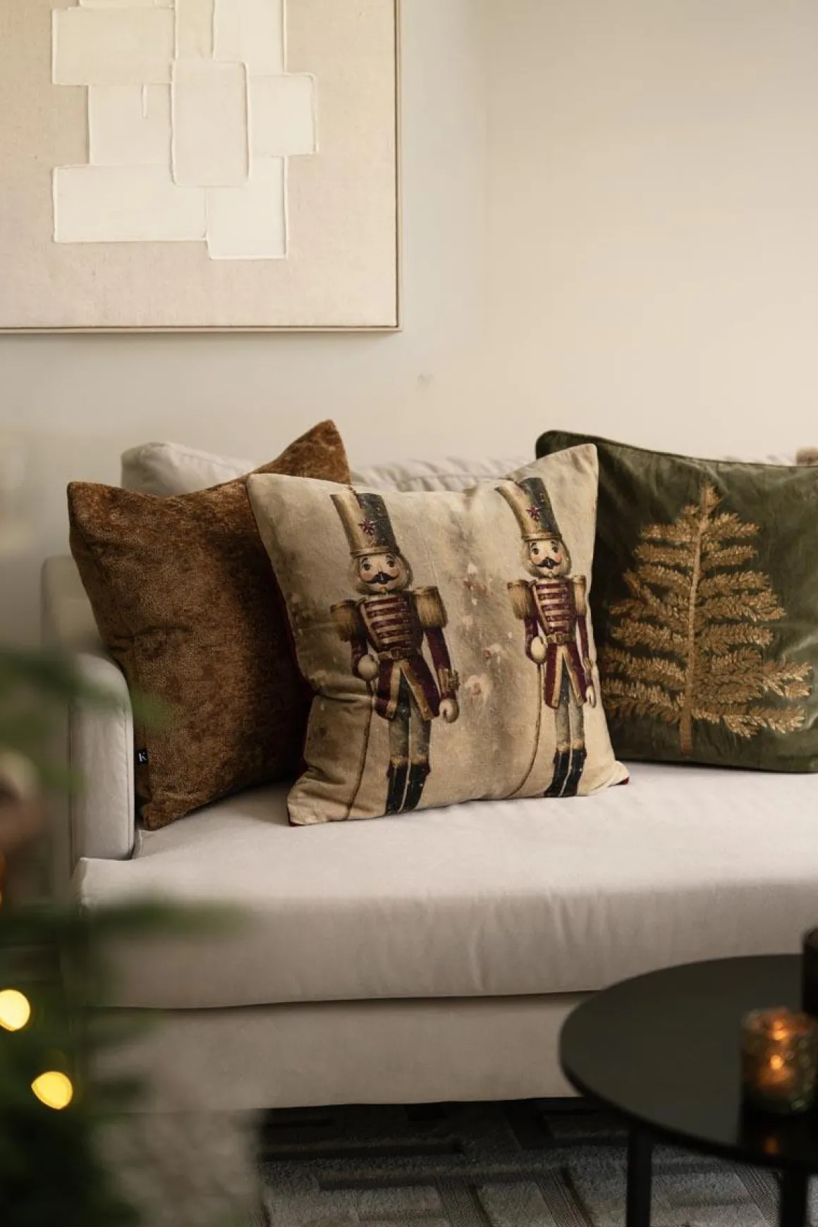 Putetrekk i myk grønn velur med elegant gulltre-broderi som gir stuen en lun og festlig julefølelse. Perfekt alene eller kombinert med andre juleputer for et helhetlig juleuttrykk! Utforsk alle våre for å skape en koselig kombinasjon!