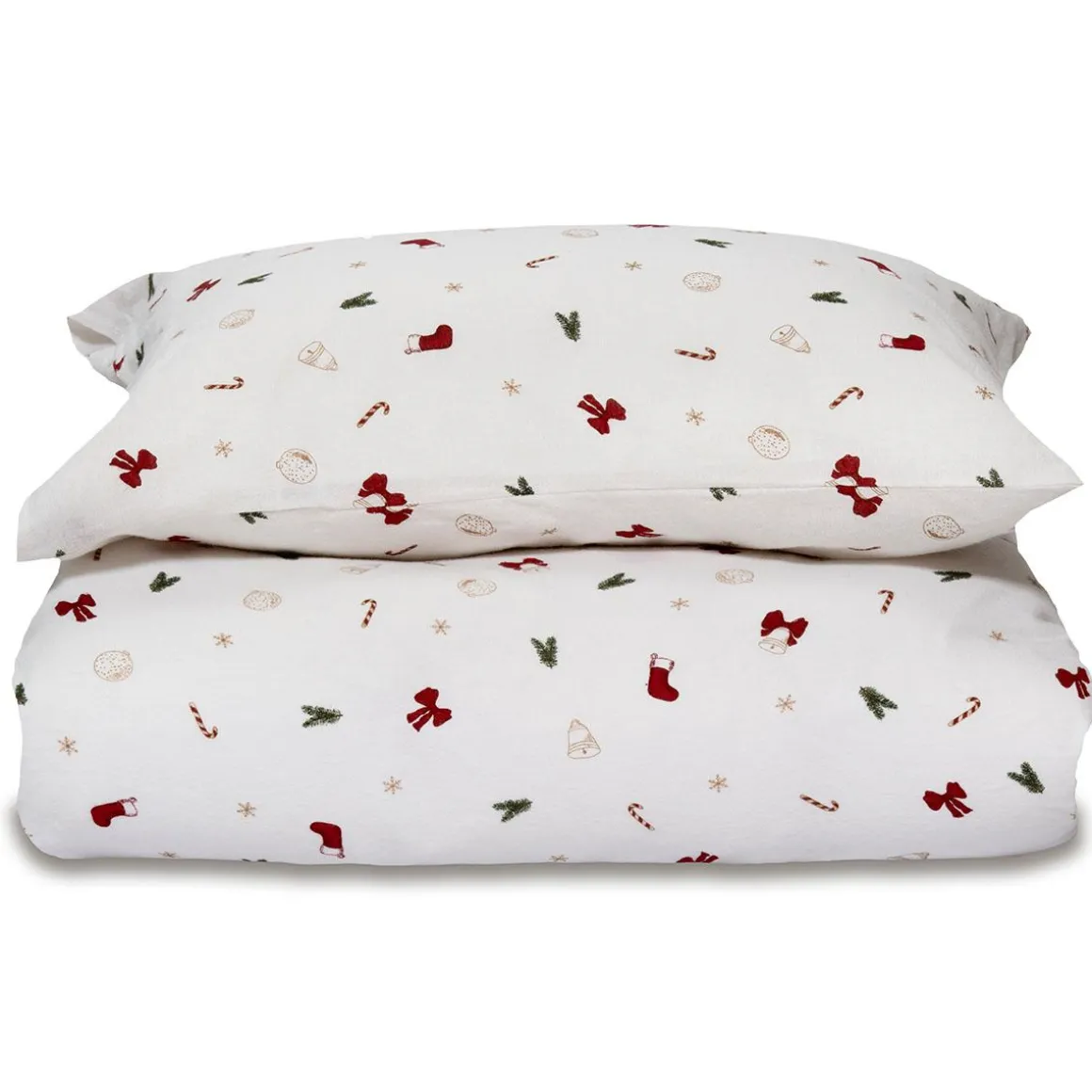 Mykt sengesett i flanell med små, stemningsfulle juledetaljer. Skaper en lun og koselig følelse på soverommet i adventstiden.