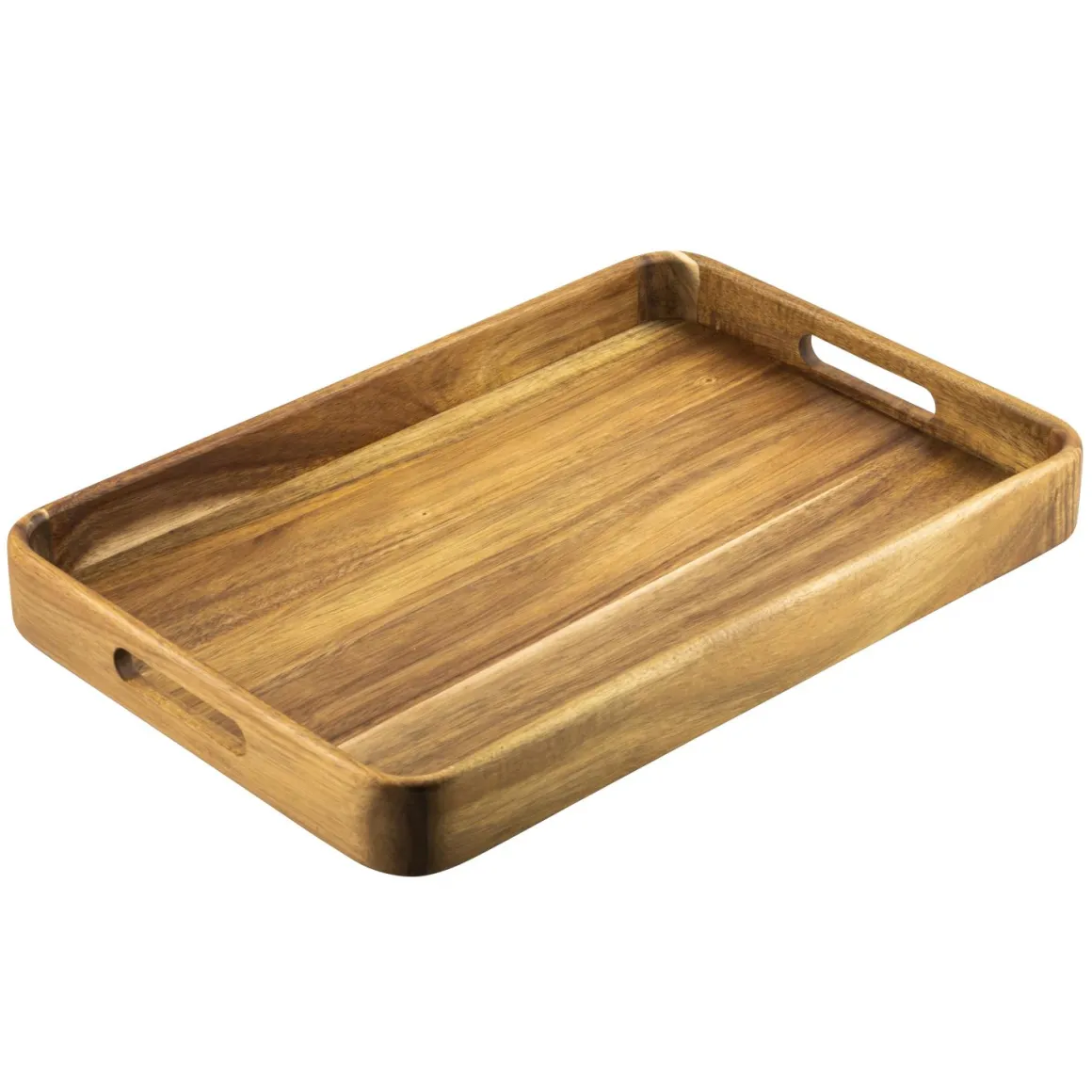 Serveringsbrett i akasietre som gjør seg lekkert på bordet. Gjør seg vel så lekker til å stå fremme som pynt og til oppbevaring på kjøkkenbenken.