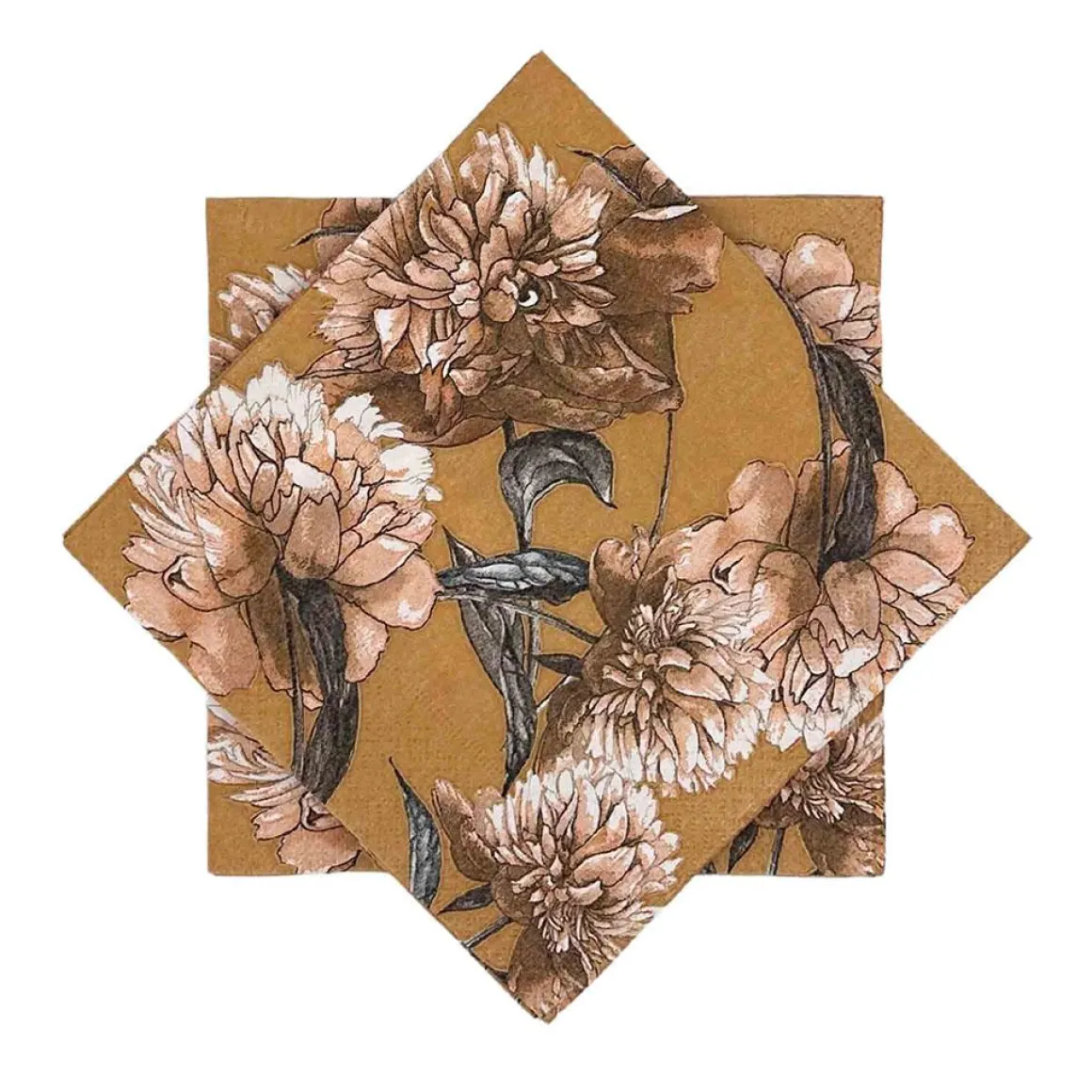 Inviter naturens varme inn i ditt hjem med disse vakre okerfargede serviettene med hortensiamotiv. Den rike okerfargen og det elegante blomstermotivet gir borddekkingen din en varm og innbydende følelse.