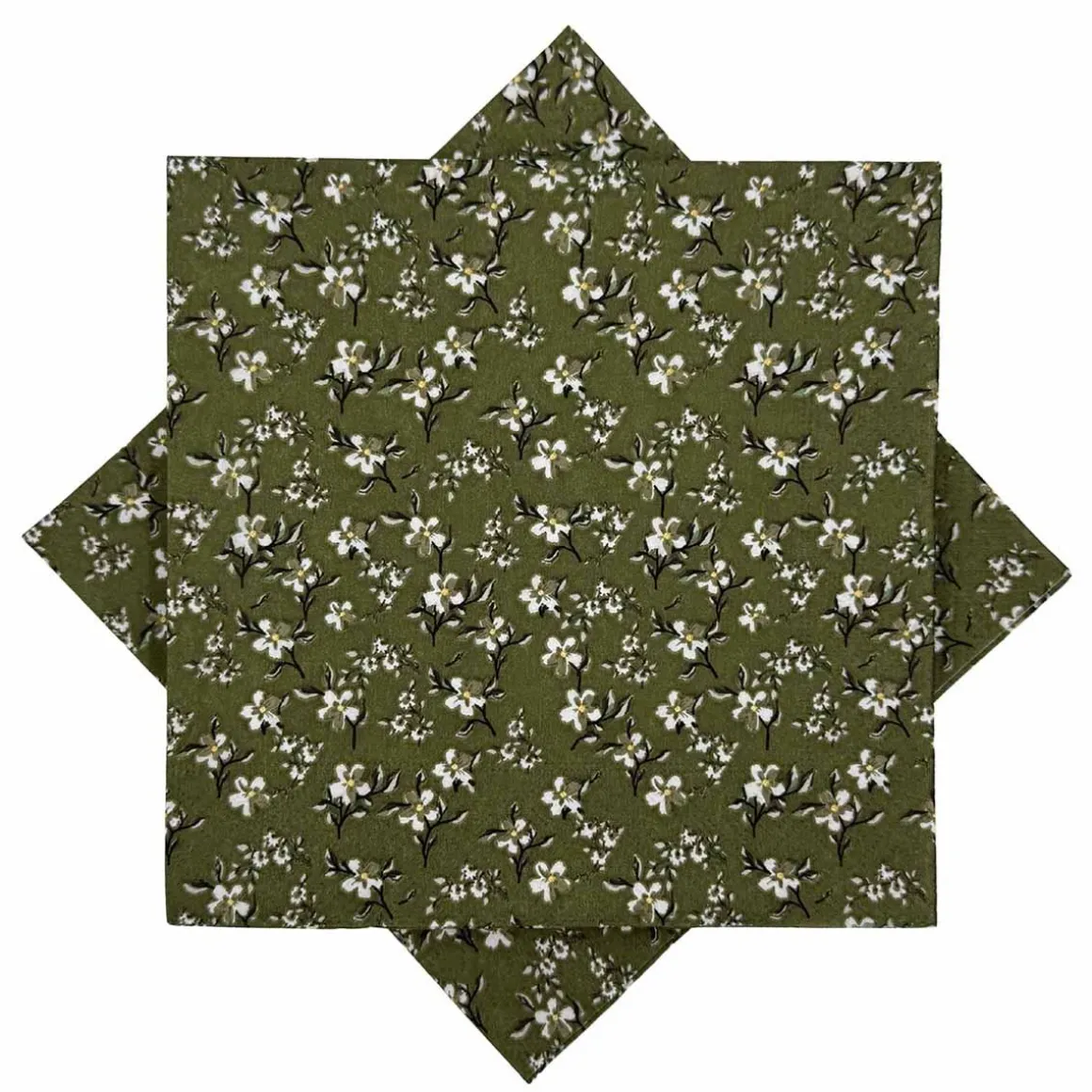 Lys grønn serviett med et mønster av små blomster, som tilfører borddekkingen et friskt og delikat preg. Sjekk ut alt du trenger til bordekkingen !