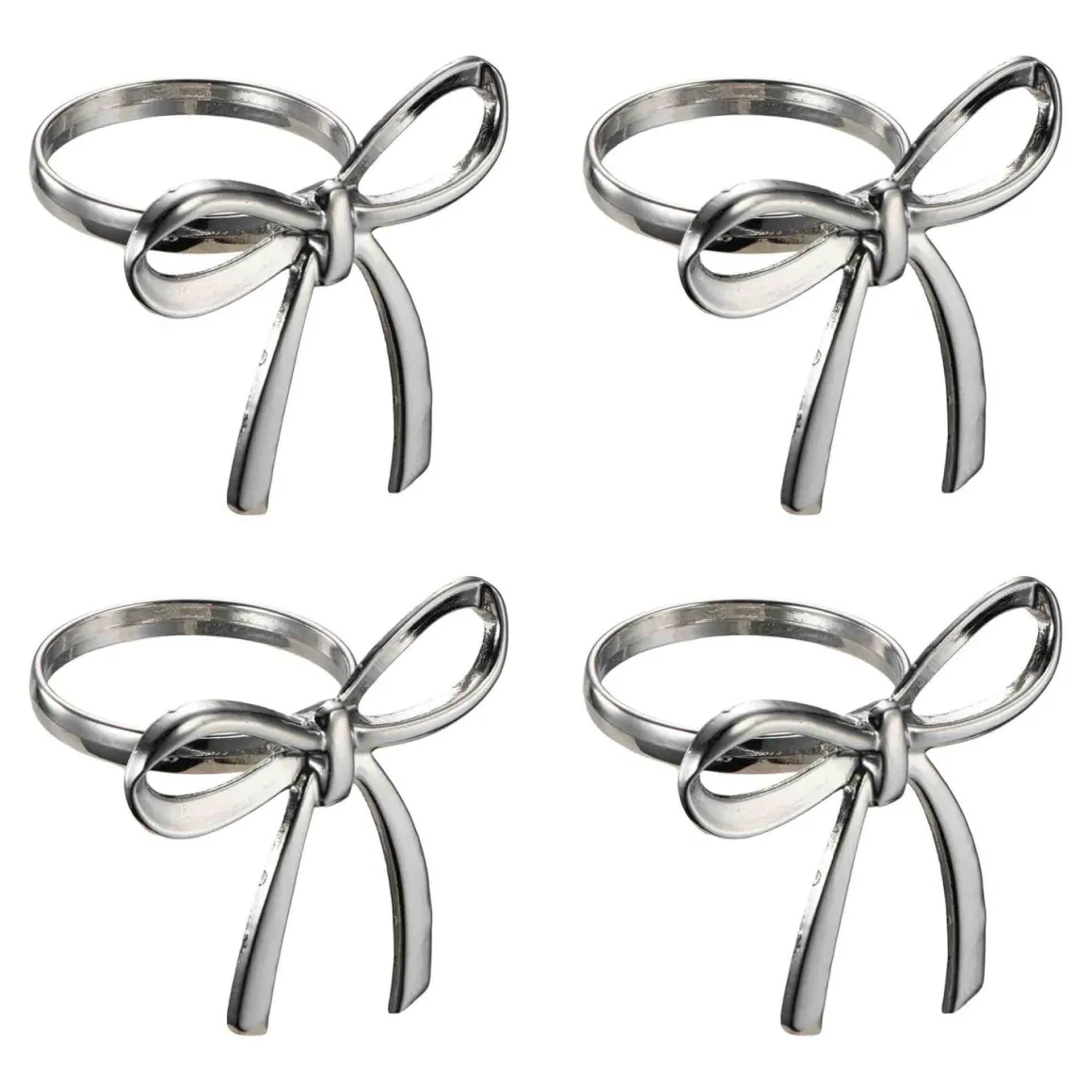Sett med fire elegante serviettringer formet som sløyfer, perfekte for å gi borddekkingen et stilfullt og gjennomført uttrykk. Passer til både hverdag og fest. Kombiner gjerne med våre , og annet for et helhetlig preg.