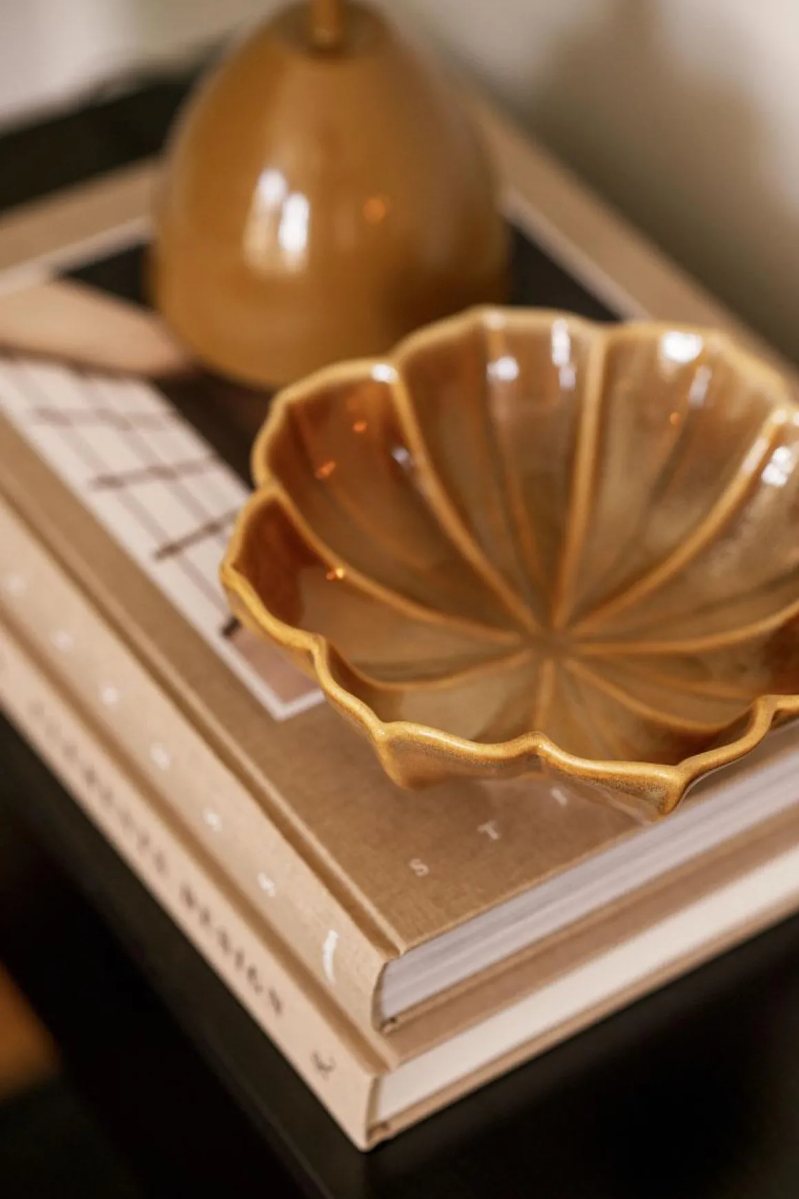 Rillene på denne dekorskålen gjør den perfekt til pynt på sofabordet eller i en hylle. Fargen og den blanke glasuren komplimenterer høstens farger. La den skinne for seg selv eller bruk den til oppbevaring av ting som nøkler eller andre småting.
