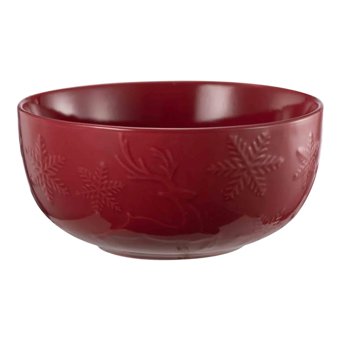Vår røde juleskål med reinsdyr og snøfnugg gir et festlig preg til enhver julefeiring. Denne skålen er perfekt for å servere julegodterier, småretter eller som en dekorativ skål på bordet.