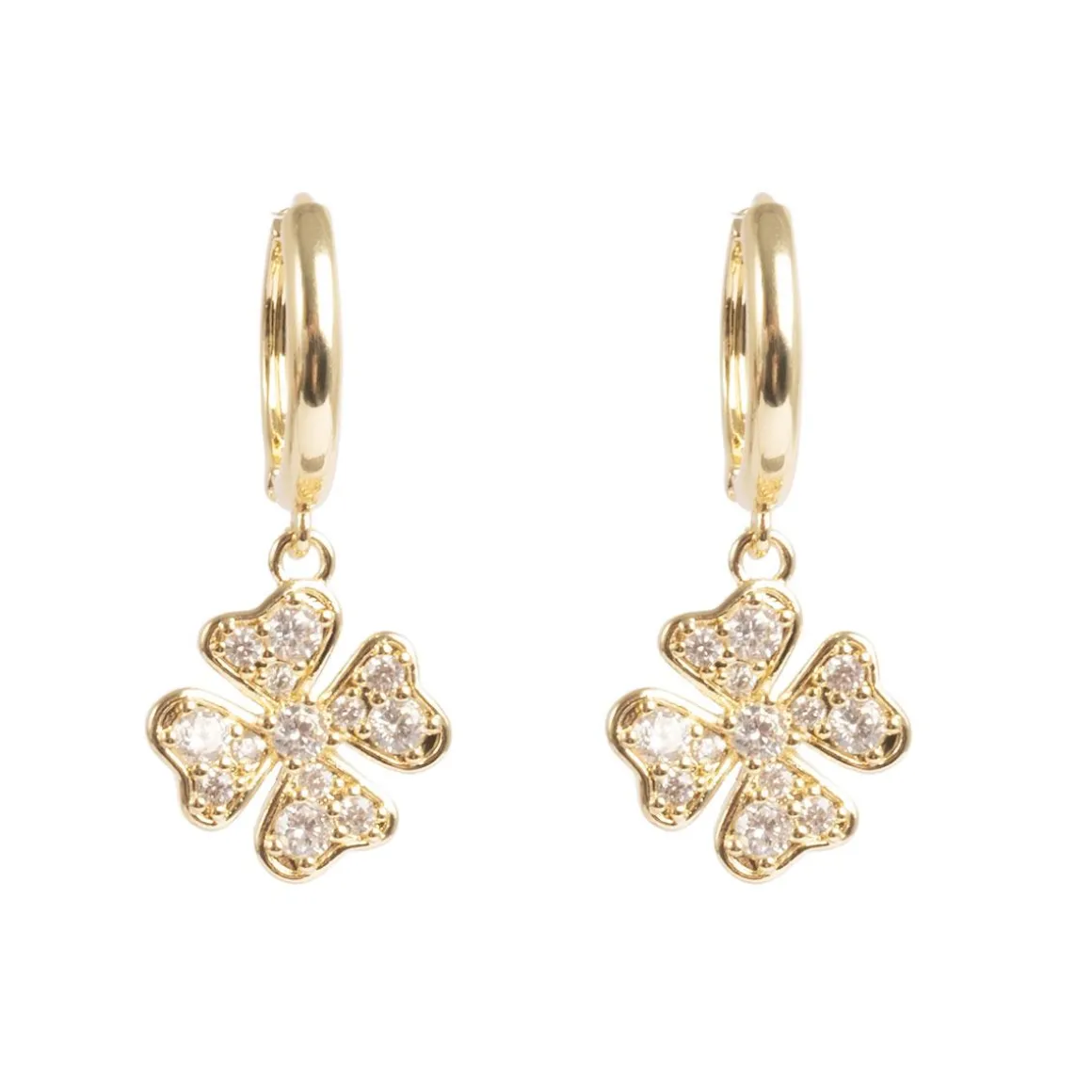 Små øreringer med firkløver i gull, en lykkebringende detalj!