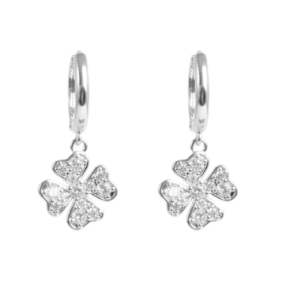 Elegante små øreringer i sølv med et delikat firkløveranheng!