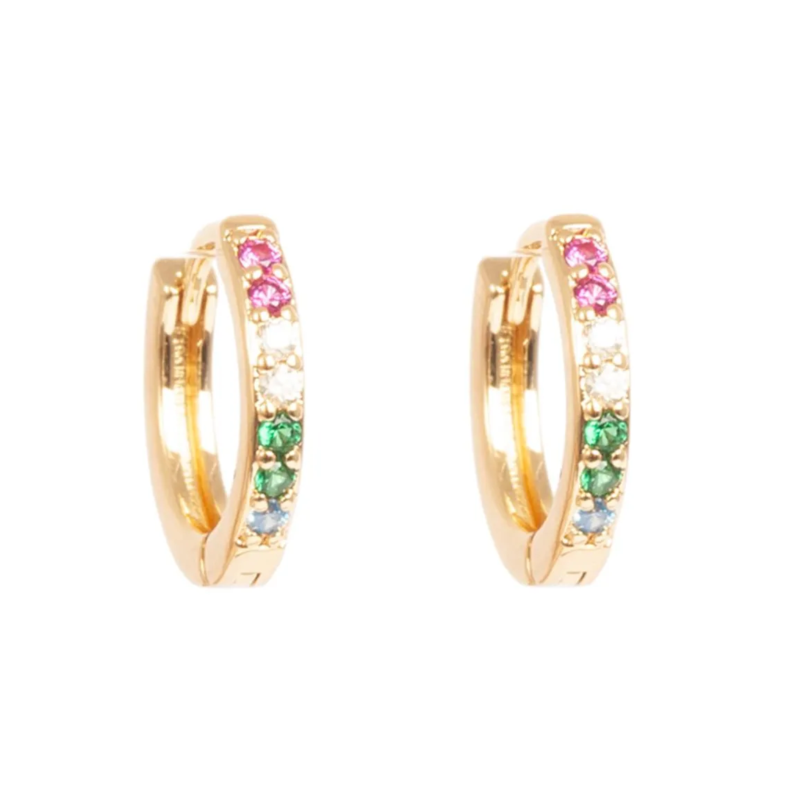 Nydelige gullfargede øreringer med stener i rosa, grønn, hvit og blå fra A&C Oslo. En fin gave til deg selv eller en god venninne.