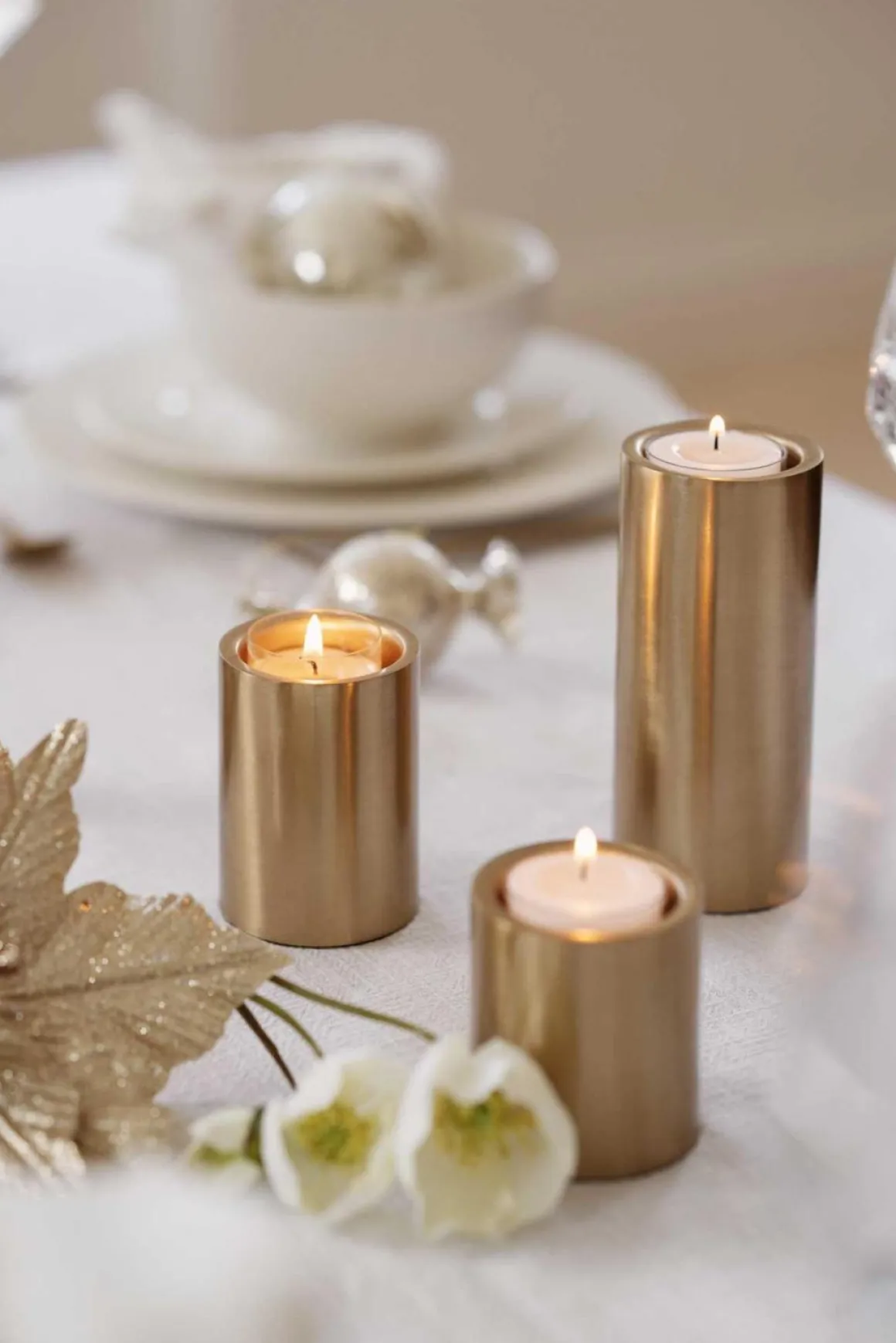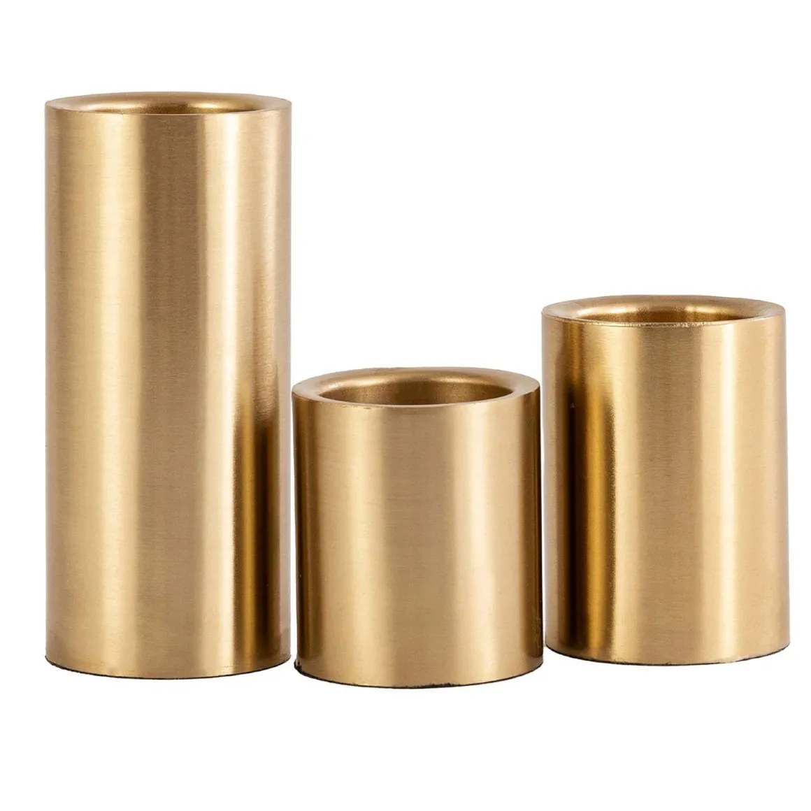 Legg til et snev av glam i hjemmet ditt med dette settet med telysholdere i gull i forskjellige høyder! De tre telysholderne lager en stilig trio når de er samlet, men kan også plasseres rundt i rommet for å skape et sammenhengende tema.