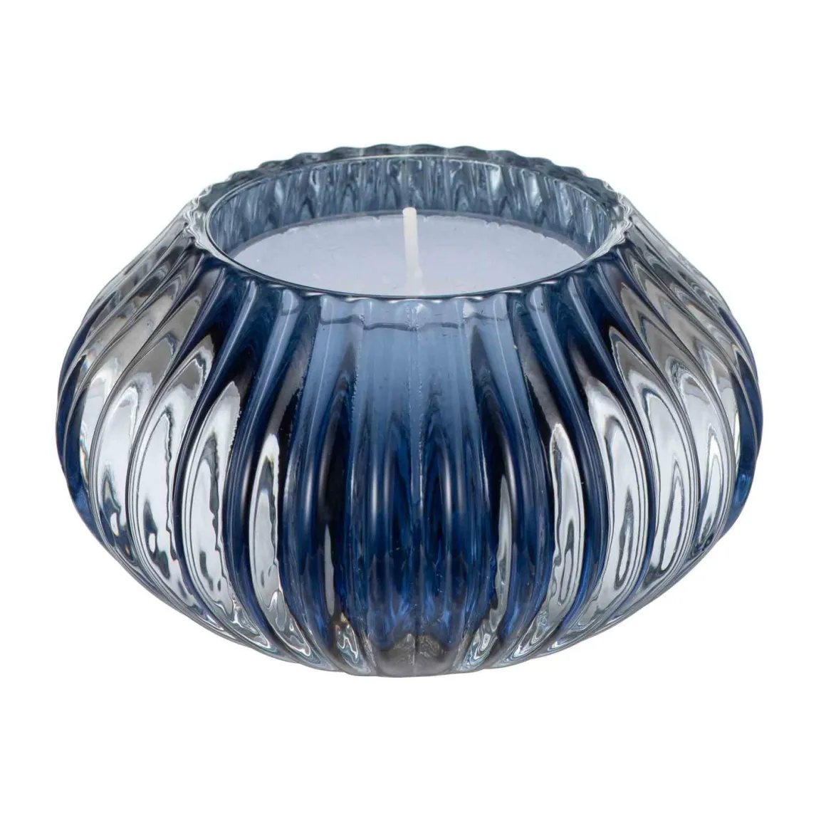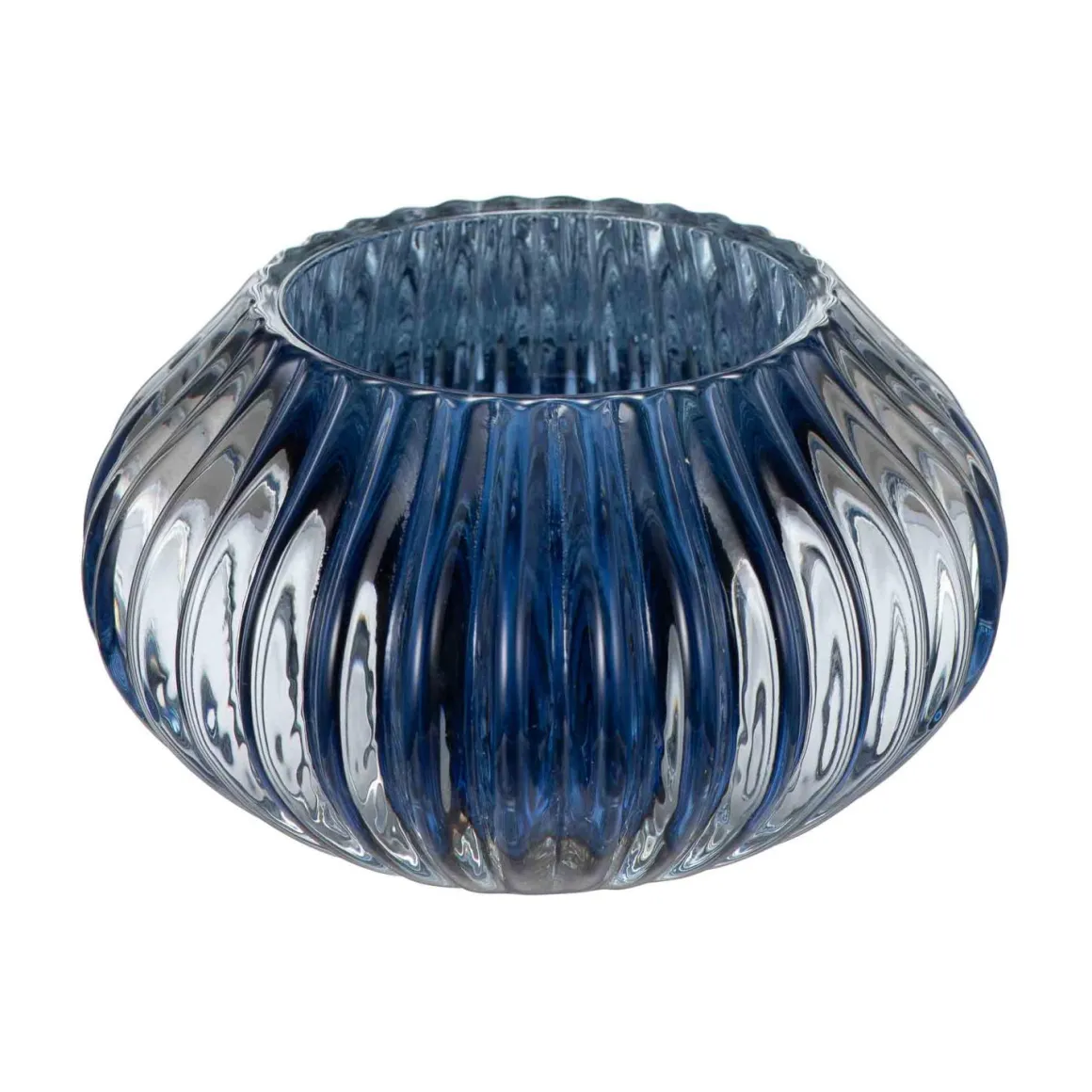 En lysestake som kombinerer dyp blåfarge med elegante riller i glass. Skaper en nydelig lyseffekt som passer perfekt til kveldsstemning. Ideell for telys og liten nok til å plasseres hvor som helst – på en bokhylle, et nattbord eller som en del av en dekorativ borddekking.
