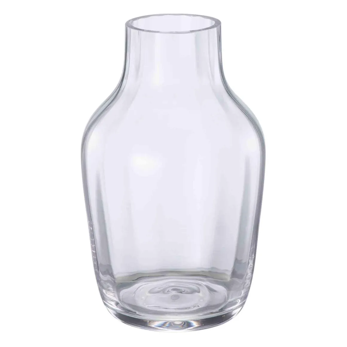En liten glassvase som passer perfekt til en enkel stilk eller små buketter. Den tidløse formen gjør den enkel å plassere både på et nattbord, en bokhylle eller som del av et større stilleben. Kombiner med i forskjellige materialer for et varmt og balansert uttrykk.